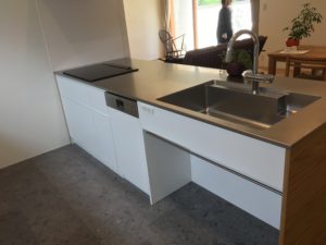ナラ材板目のキッチン