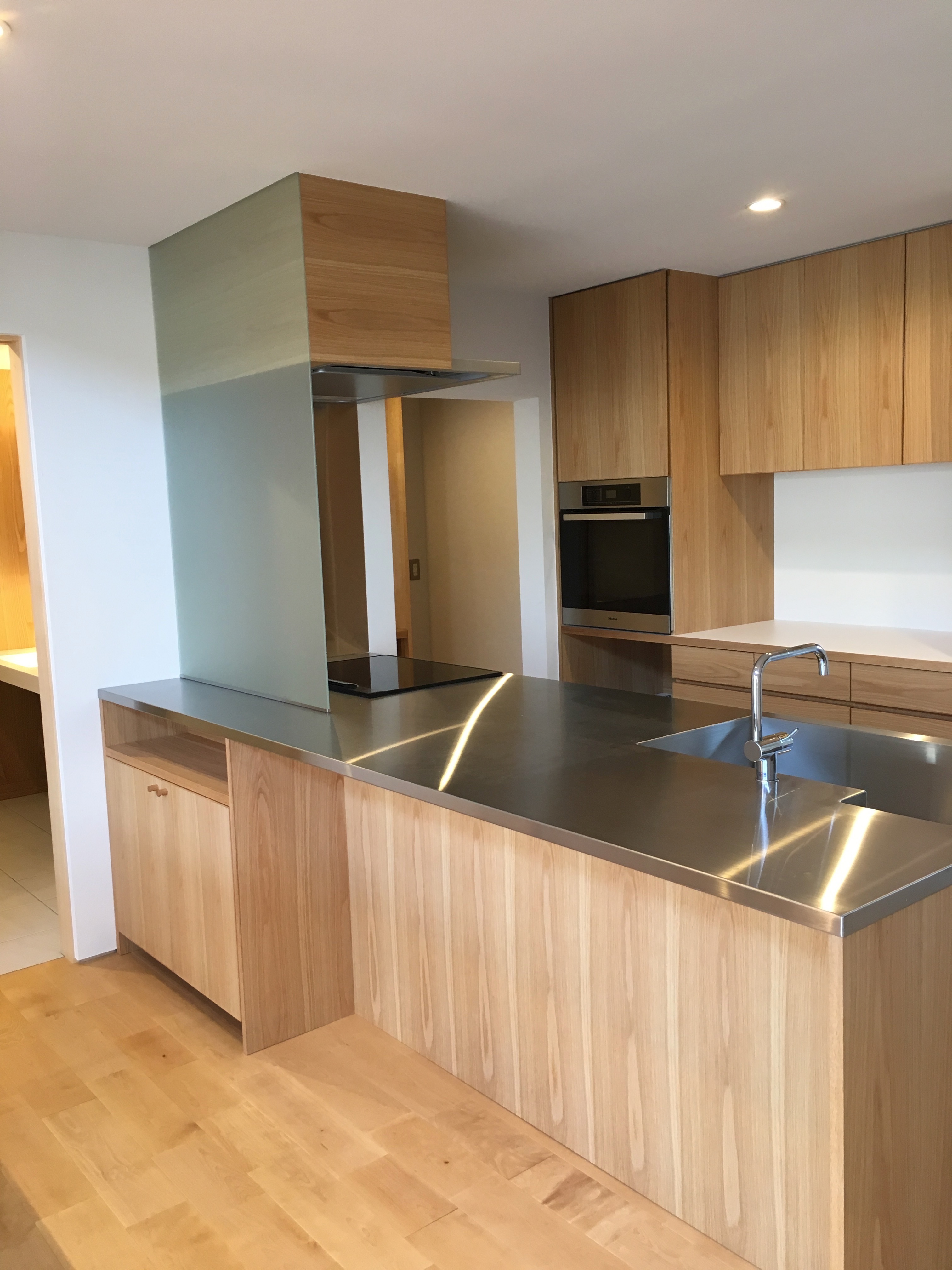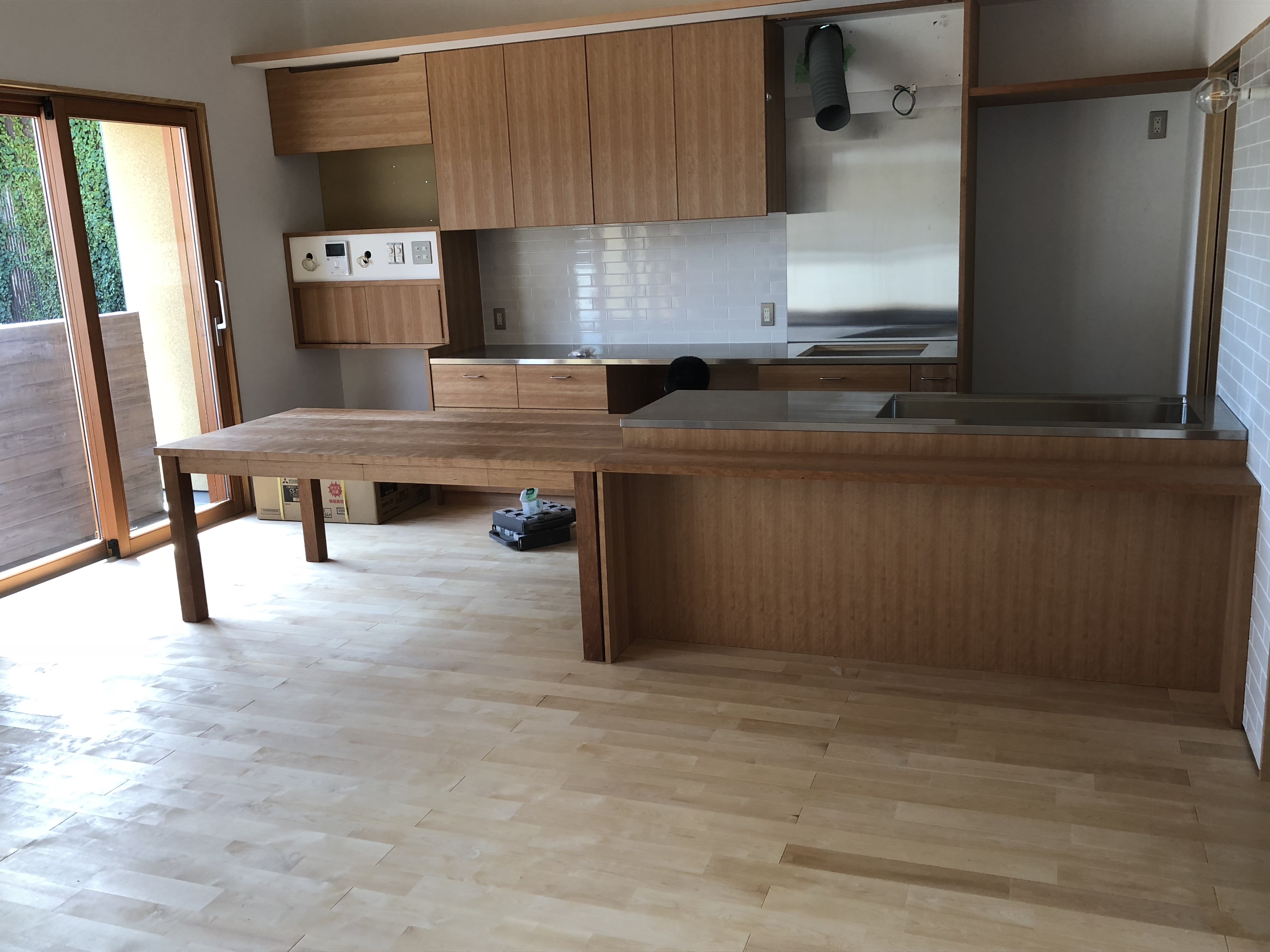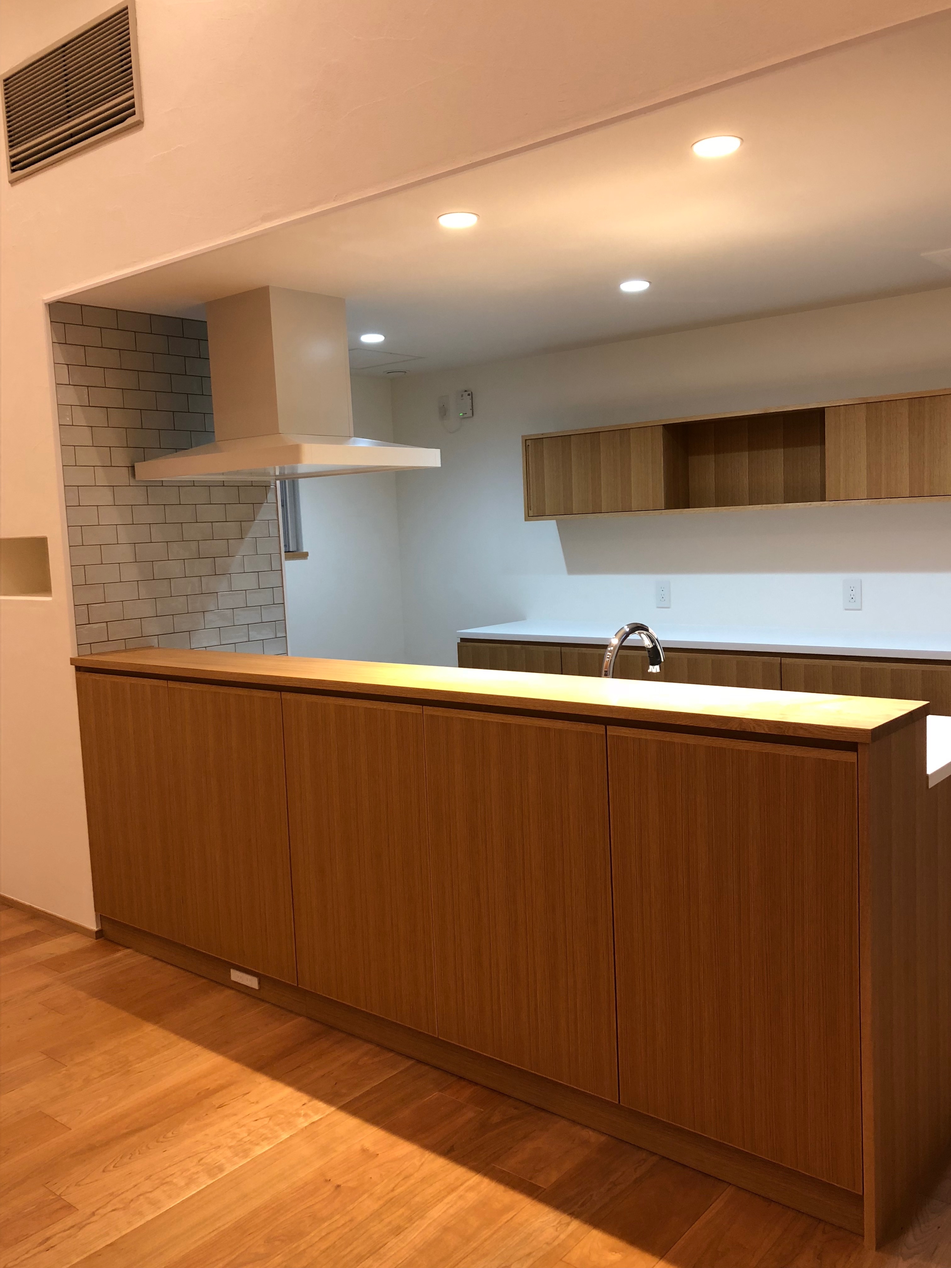 ナラ無垢材カウンターのあるキッチン