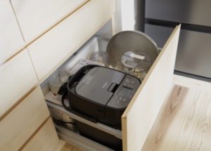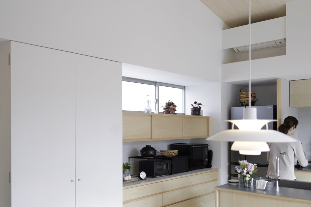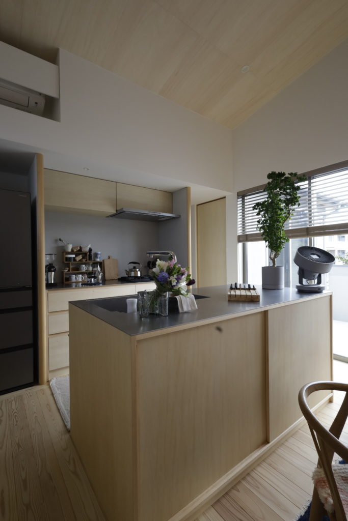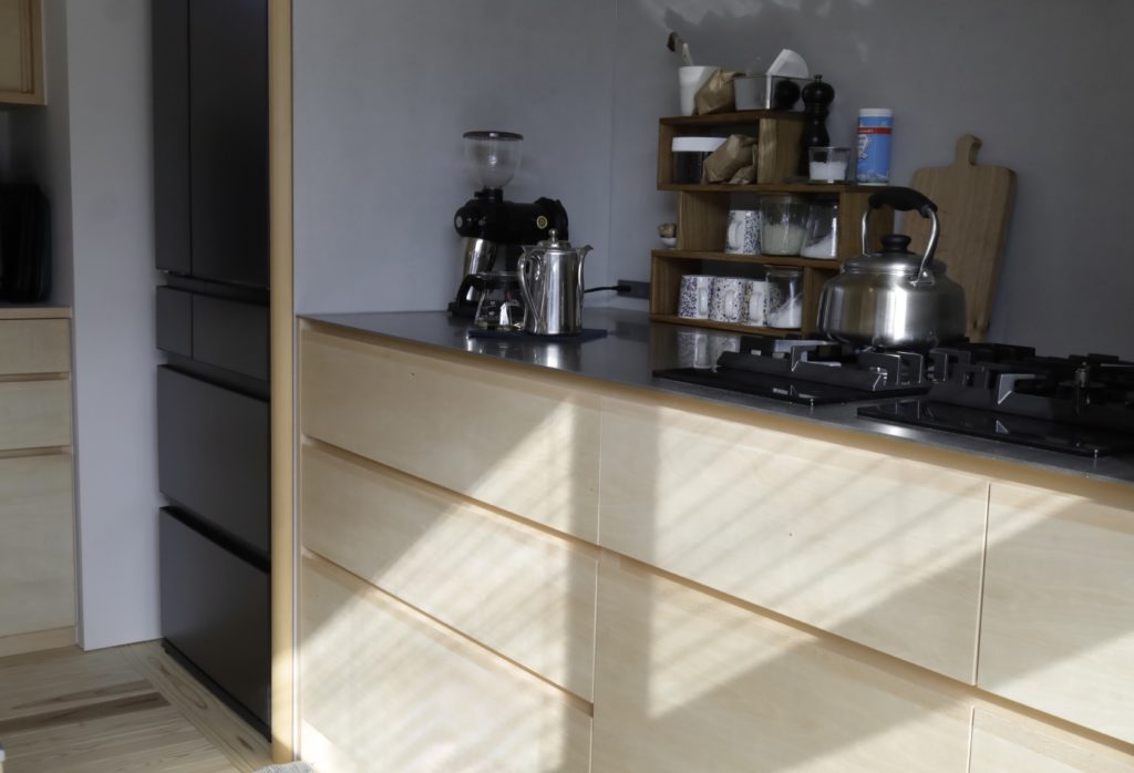 北欧家具が馴染むやさしいシナ合板のキッチン
